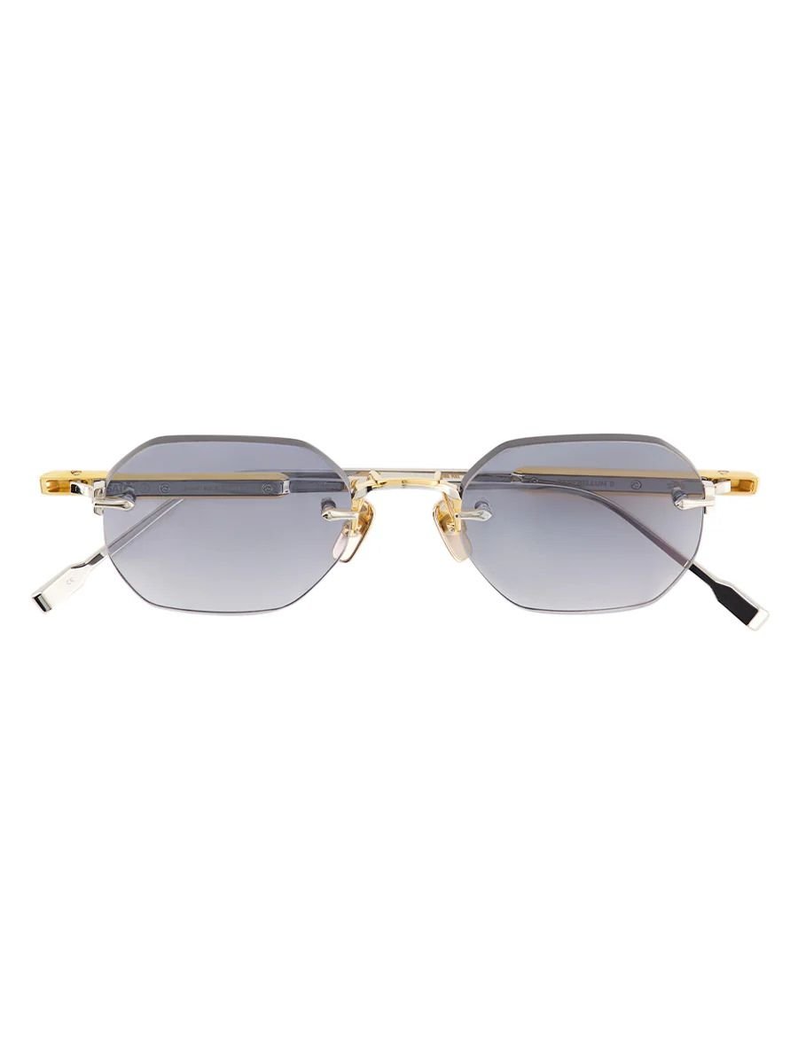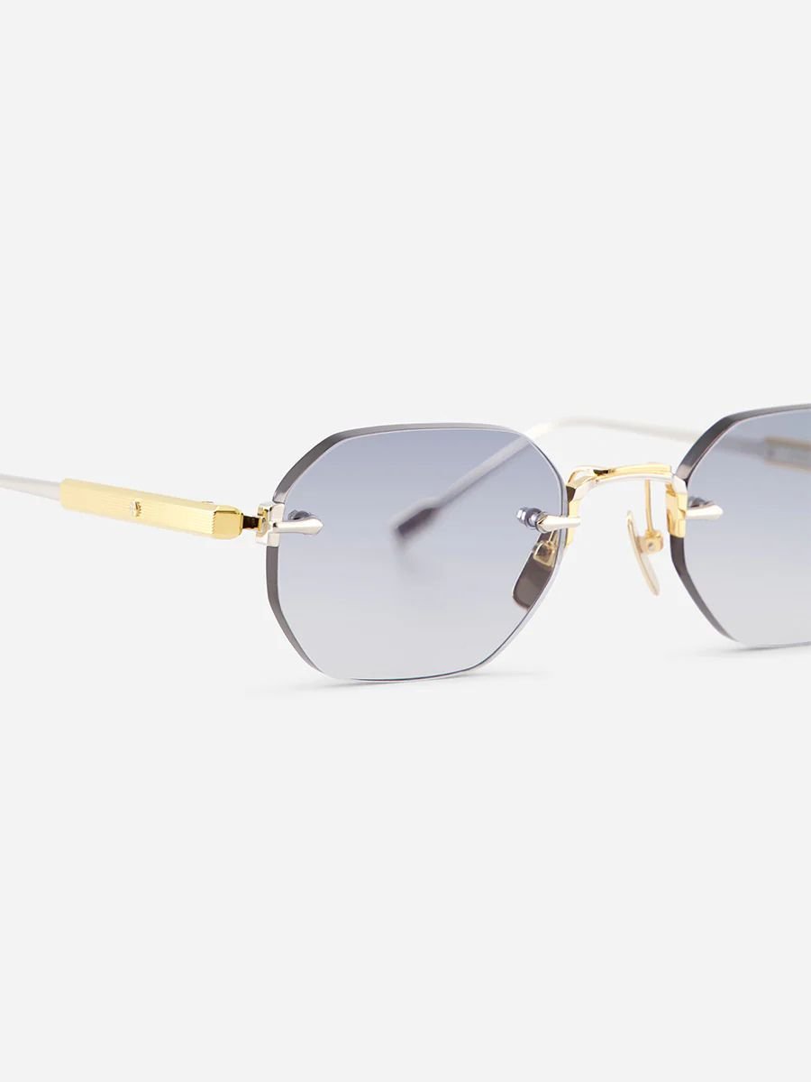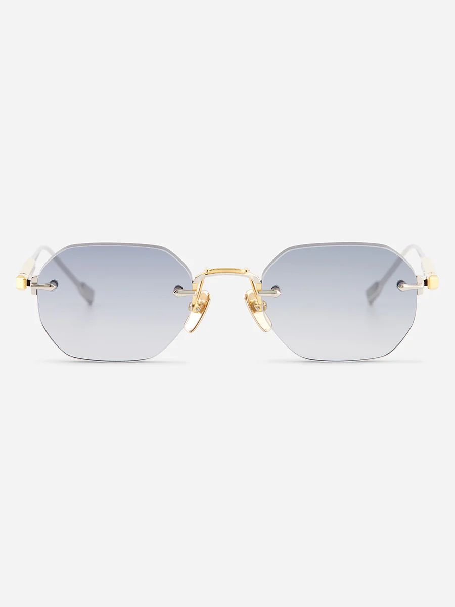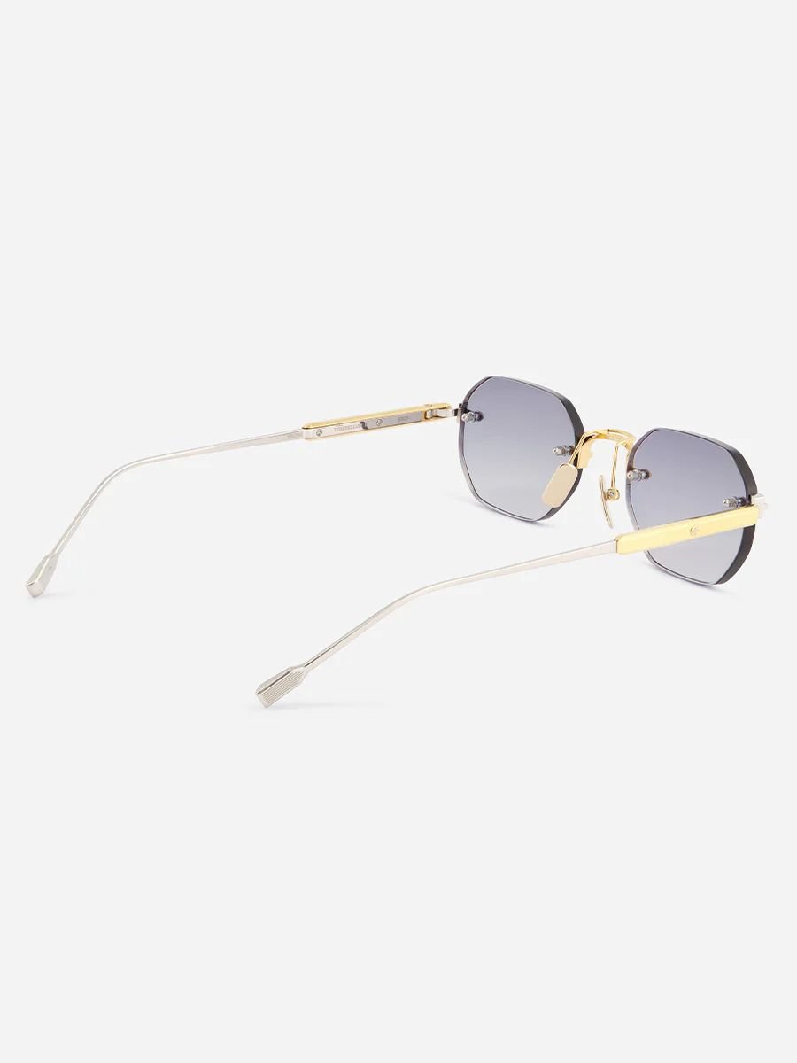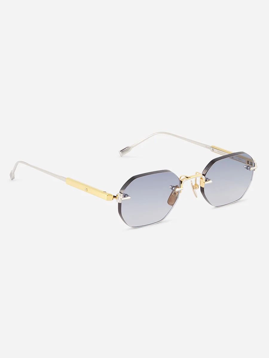 The Terebellum II S703 sunglasses offer a distinguished approach to eyewear. Meticulously crafted in Japan, these rimless hexagonal-shaped sunglasses boast 4mm lenses fitted in titanium enhanced with yellow gold and platinum coating. Its versatile design is perfect for both men and women, making it a subtle yet captivating statement piece for any wardrobe.